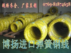 我公司代理销售国内外优质品牌弹簧线材:韩国象牌KOS琴钢线、韩国象麦KIS琴钢线、韩国大新D|S|R琴钢线、南韩曼霍Manho琴钢线、韩国Top Fair琴钢线、日本铃木油回火弹簧钢丝, 日本铃木SWOSC-V琴钢丝,日本铃木SUZUKI、日本精线NAS、日本住电SWPG、日本六甲琴钢丝SWP-A、SWP-B、SWP-C、日本神钢SHINKO、德国勒斯劳ROSLAU、山凤牌弹簧钢丝等。另代理销售JIS301日本进口发条料,SUS301超薄卷带,弹簧钢丝 (BR、S-CO、NI-CO)、琴钢丝(SWP-B)、高碳钢丝(SWC)及镀镍高碳钢丝(NI-SWC)。 (博扬公司)代理全为原厂原包装,原装进口线。琴钢丝也称为琴钢线英文:music wire,piano wire,属于高碳钢。琴钢丝是经铅浴淬火后冷拉而成,具有非常高的强度极限和弹性极限,是广泛应用的小弹簧材料。钢丝的质量、性能要求严格,除拉伸试验外,还需作扭转、腐蚀、锐碳等试验。按用途可分为制造各种重要弹簧、各种高应力和械弹簧及伐门弹簧所用的琴钢丝。中国执行标准:GB4358 美国执行标准:ASTM A228 日本执行标准:JIS G 3522 材质组成:C:0.80-0.85 Si:0.12-0.32 Mn:0.3-0.6 P:0.025以下 S:0.025以下 Cu:0.2以下,硬度范围都是41-60,允许温度为120°材质特点:用于制造琴弦、阀弹簧和高应力弹簧的钢丝。具有强度高,弹性、抗疲劳、抗蠕变和韧性好,表面光滑洁净,防锈能力强以及音乐性能优良等特点。碳素弹簧钢丝(GB4357)牌号有:25~80,40Mn~70Mn。琴钢丝(GB4358)牌号有:60~80,T8MnA~T9A,60Mn~70Mn。GB 4358—84是等效采用日本JISG 3522—91琴钢丝标准。B级和C级钢丝一般选用70(67A、72A)或65Mn(67B),D级选用T9XtA和T8MnA(82B)生产。用GB 4358—84代替YB 248—64,由于标准体系不同,生产厂和使用厂都难以接受,造成标准一直未能贯彻实施,这次修订标准的目的,是在满足用户需要的前提下,对标准中不适宜的项目进行调整和修改,使标准水平保持在国内弹簧钢丝标准中最高水平。